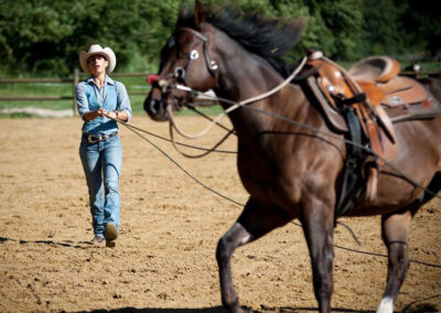 Mon rôle est de vous aider à affiner votre ressenti, à mieux comprendre votre cheval et à développer une connexion authentique, fidèle aux valeurs de l’équitation western.