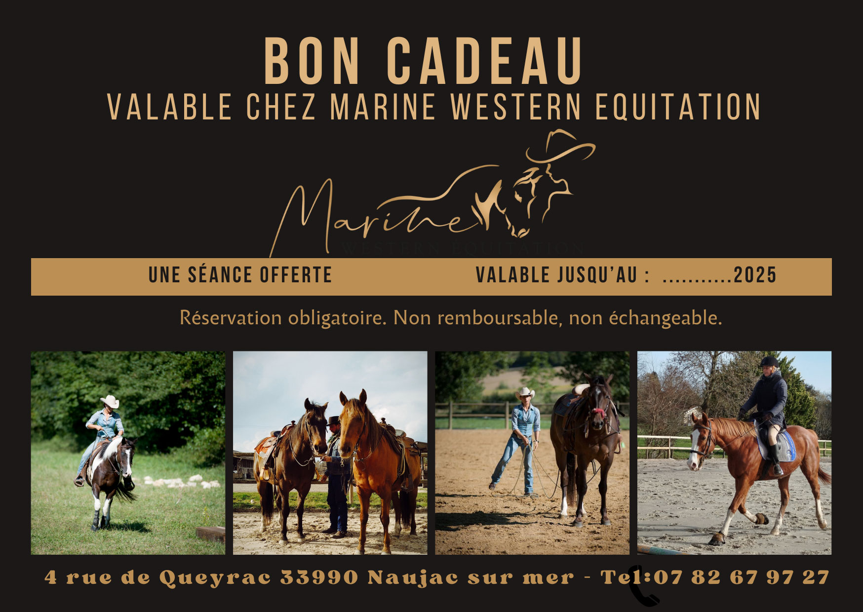 « Marine Western Équitation est née de mes expériences de vie et de l’envie profonde de transmettre. Mon approche repose sur une progression partagée avec le cheval, guidée par les principes de l’équitation western. Ce qui m’anime : vous aider à devenir autonome, libre d’atteindre vos objectifs en parfaite harmonie avec votre cheval. »